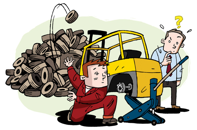 Hint: look out for black rubber marks on your warehouse floor. They're a sign of excessive tyre wear.