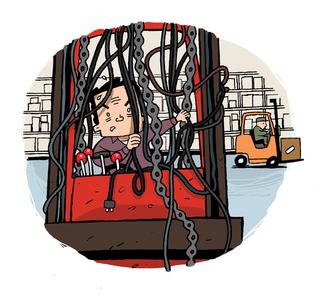 While this does solve the immediate problem, it can result in another. Reverse operations require the forklift operator to turn his neck and shoulder, while keeping a foot on the pedals and a hand on the wheel. This twisting action is linked with serious long-term neck and upper back injuries.